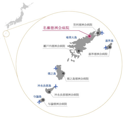 また、名瀬徳洲会病院には、当院(八尾徳洲会総合病院)の外科医師が外科業務の応援として、毎週当番制で勤務しています。