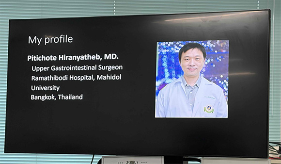 この度、タイ王国・バンコクにあるRamathibodi Hospital(Mahidol University)にご勤務されている上部消化器外科専門のPitichote Hiranyatheb先生が、更なる技術習得のため当院を訪問されました。