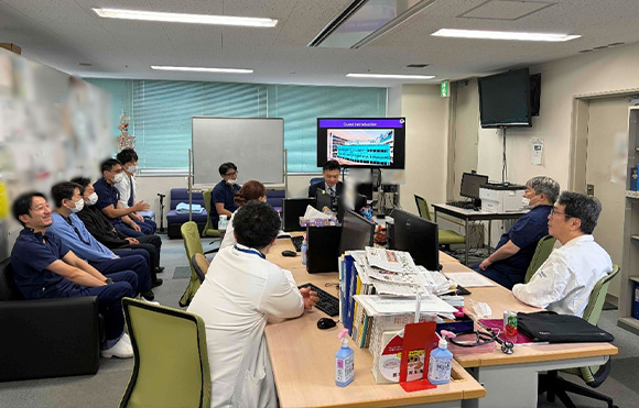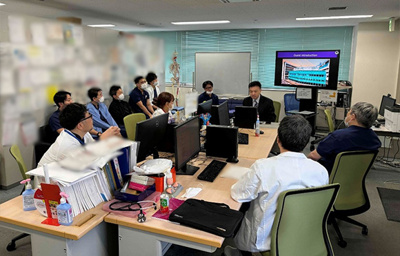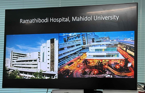 また、当日は朝のカンファレンスにも参加していただき、Hiranyatheb先生ご自身よりRamathibodi Hospitalの概要や診療体制についてご紹介いただくプレゼンテーションも行っていただきました。英語で活発なディスカッションを行い、両施設の取り組みや医療体制について理解を深める大変有意義な機会となりました。